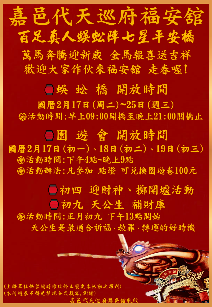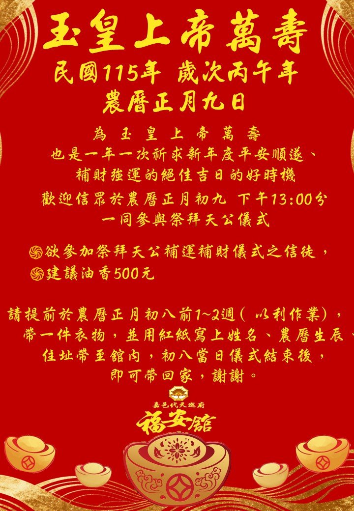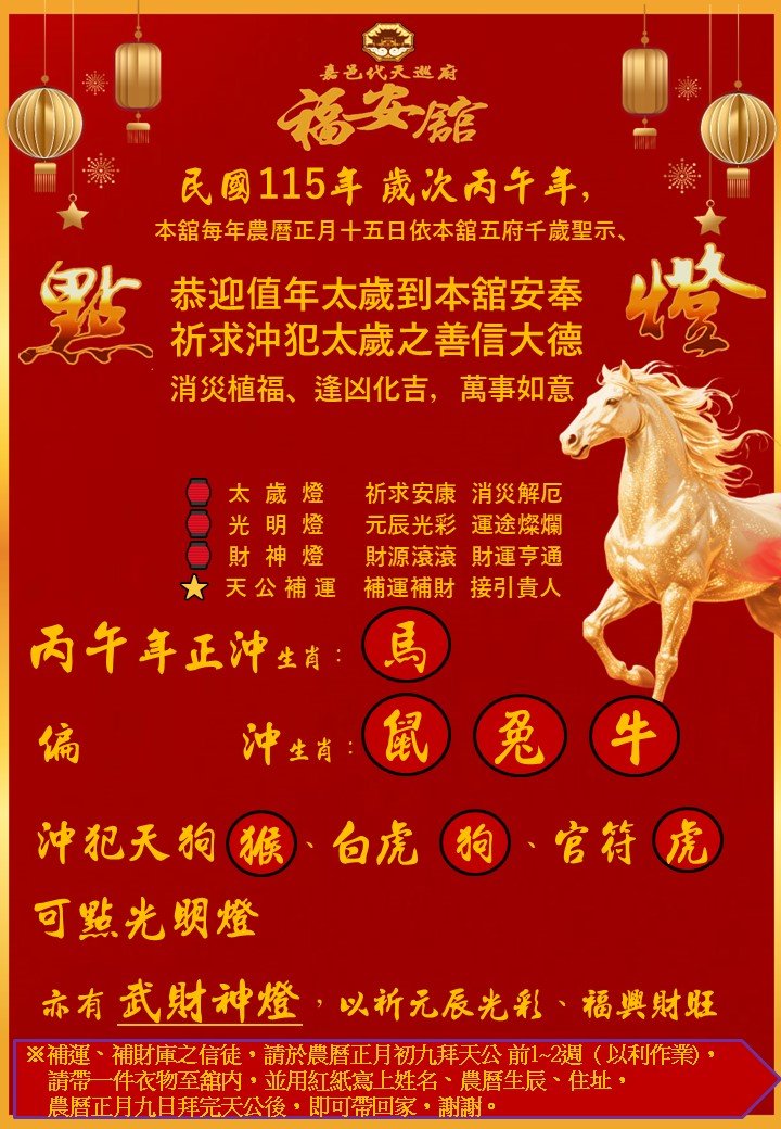 出巡四海,利重巡難超度岸。 代天巡府福安舘,主祀代天巡狩吳府千歲。