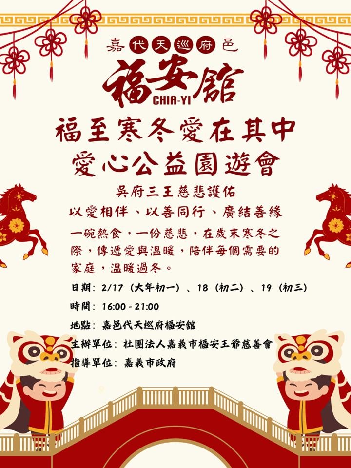 主辦單位:社團法人嘉義市福安王爺慈善會/嘉邑代天巡府福安舘